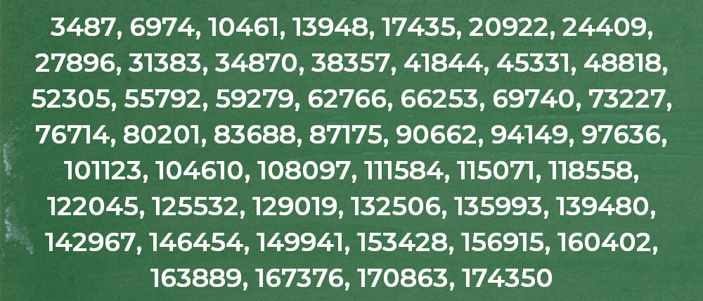 *Los múltiplos de 3487, como de cualquier otro número, son infinitos.