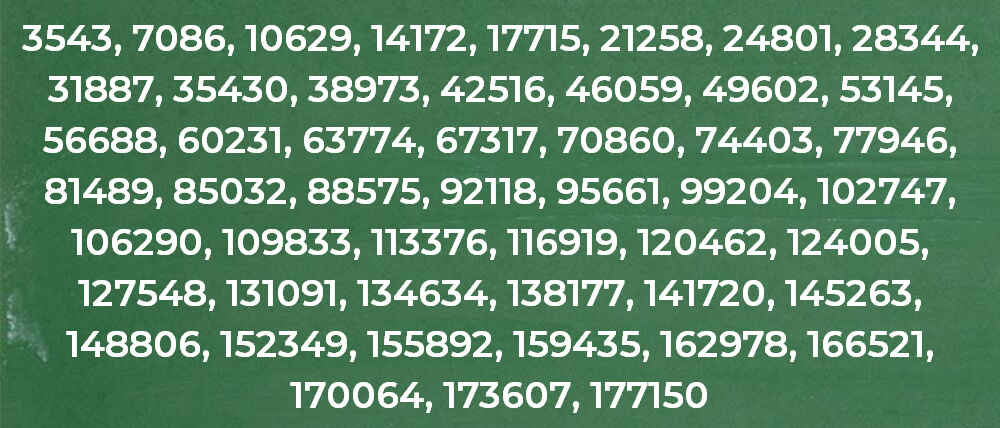 *Los múltiplos de 3543, como de cualquier otro número, son infinitos.