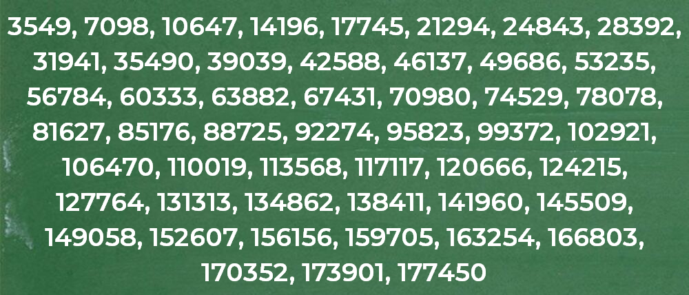 Los primeros 50 múltiplos de 3549 son: