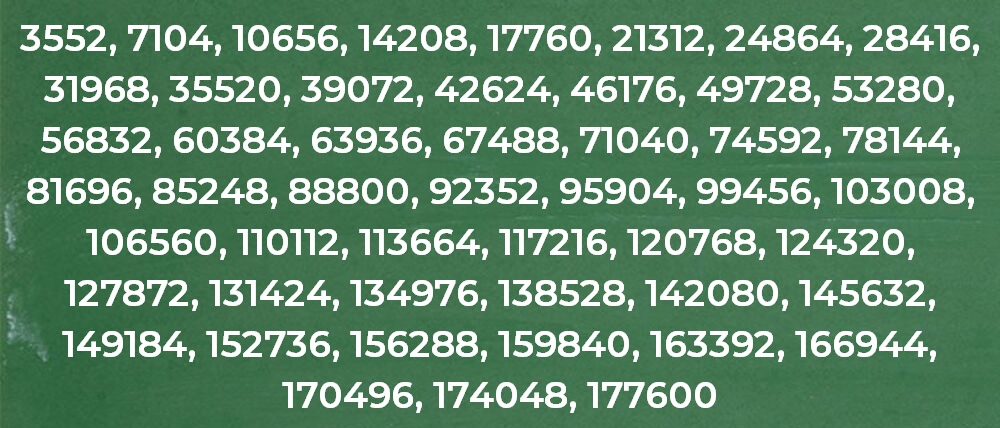 *Los múltiplos de 3552, como de cualquier otro número, son infinitos.