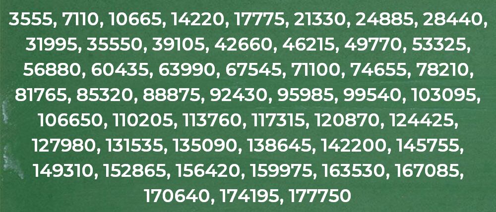 *Los múltiplos de 3555, como de cualquier otro número, son infinitos.