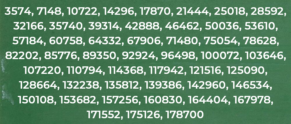 *Los múltiplos de 3574, como de cualquier otro número, son infinitos.