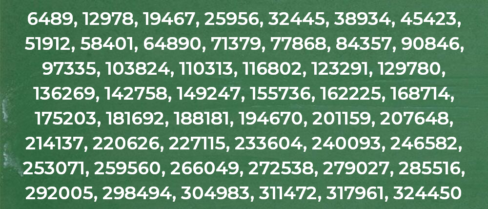 *Los múltiplos de 6489, como de cualquier otro número, son infinitos.