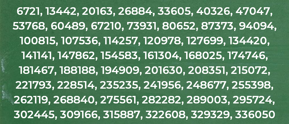 *Los múltiplos de 6721, como de cualquier otro número, son infinitos.