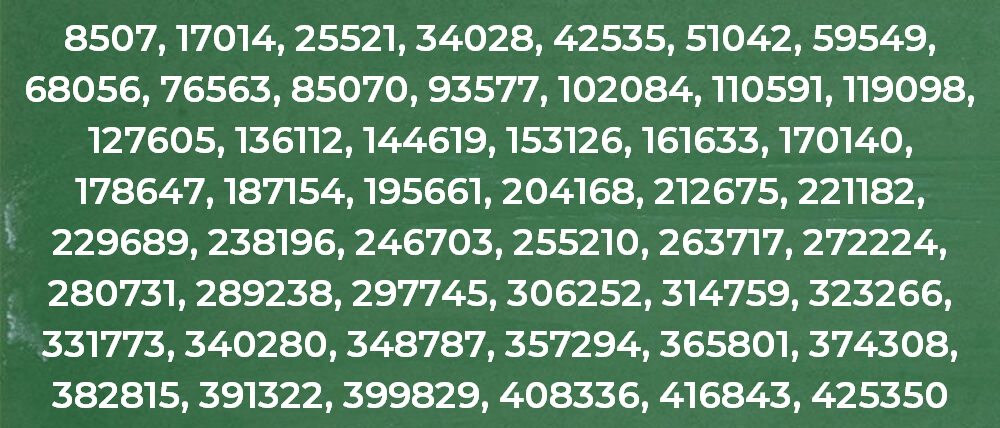 *Los múltiplos de 8507, como de cualquier otro número, son infinitos.